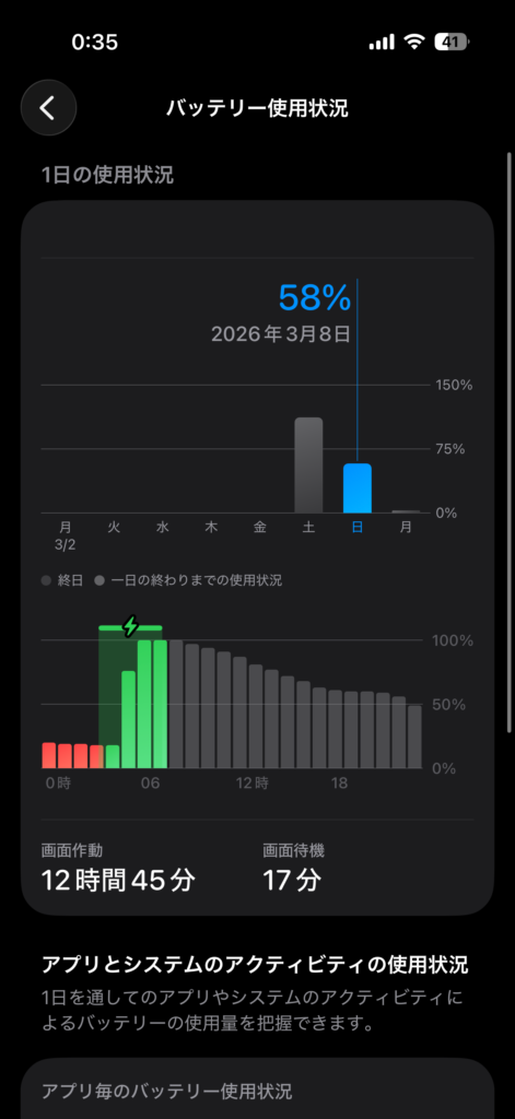 「充電せずに睡眠、起きたら充電、出勤直前に抜く」という充電サイクルに変更しました。
