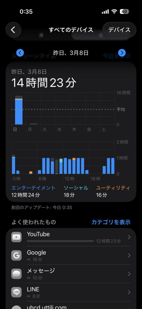 iPhone購入した翌日に熱を出したため、バッテリー検証のために1日中YouTubeを開いて視聴しました。