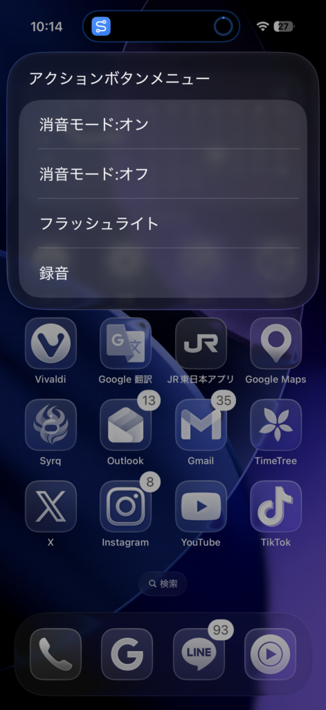 2つを上部で合わせると、今まで音量を上げるボタンの位置がアクションボタンになっています。