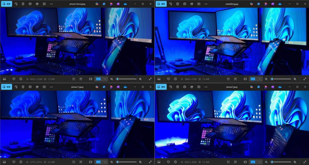 私が現役で使っている端末の各比較になります。(iPhone 7は現役で使ってないです)